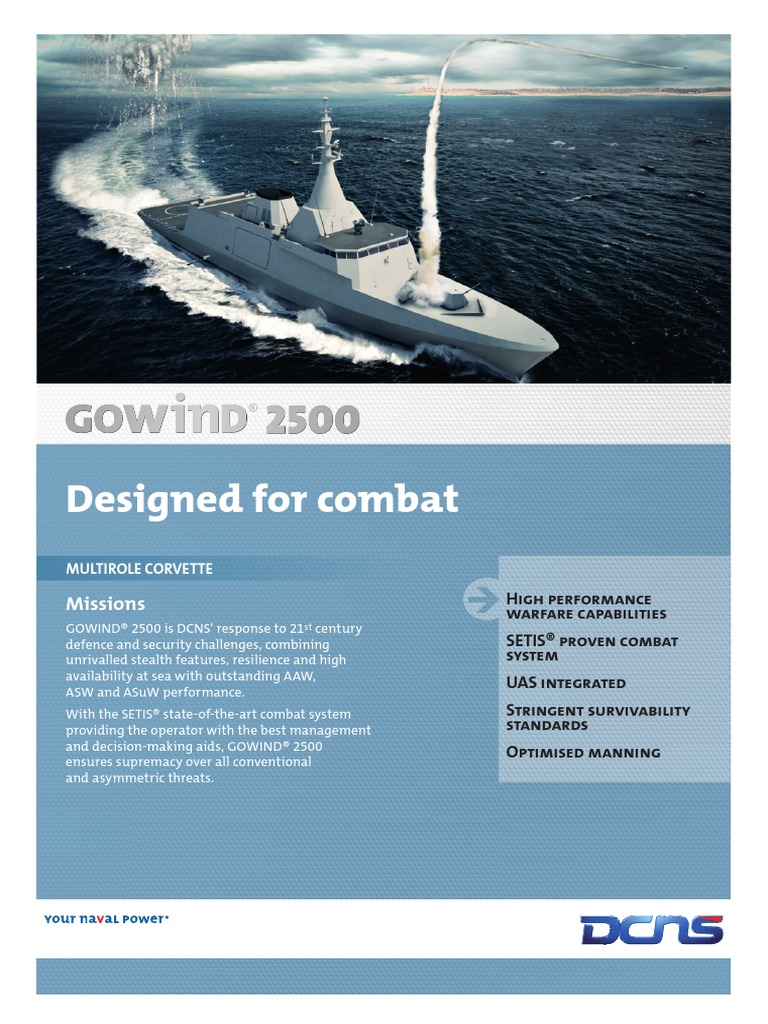 Furthermore, deal embraces technology transfer and. Gowind 2500 is dcns' response to 21st century defence and security challenges, combining unrivalled stealth features, resilience and high availability at sea with outstanding aaw, asw and asuw performances. It incorporates the setis combat system, developed by dcns for fremm frigates and. The egyptian navy's fourth gowind 2500 corvette, ens luxor (986) has been launched at the alexandria shipyard (asy). Malaysia's lcs design is based on the french gowind 2500 corvette, and the first ship is expected to enter service with the royal malaysian navy in the first half of 2019.